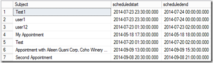 select Subject, scheduledstart, scheduledend from FilteredAppointment